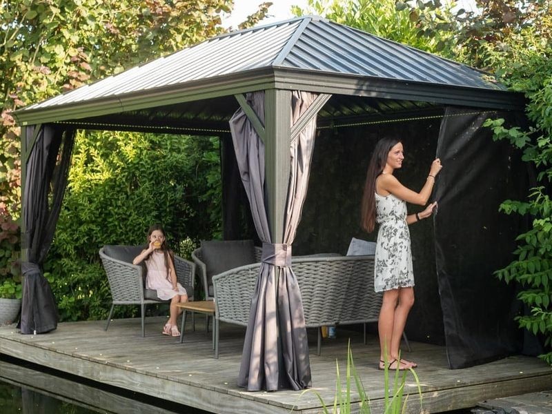 Marsala 1216 kerti pavilonhoz való függönykészlet, amely nyáron árnyékot és magánszférát biztosít. Szín: fekete.