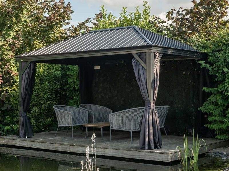 Marsala 1220 kerti pavilonhoz való függönykészlet, amely nyáron árnyékot és magánszférát biztosít. Szín: fekete.