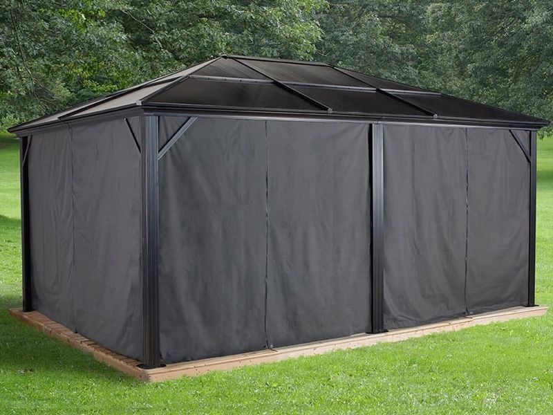 Meridien 1216 kerti pavilonhoz való függönykészlet, amely nyáron árnyékot és magánszférát biztosít. Szín: sötétszürke.