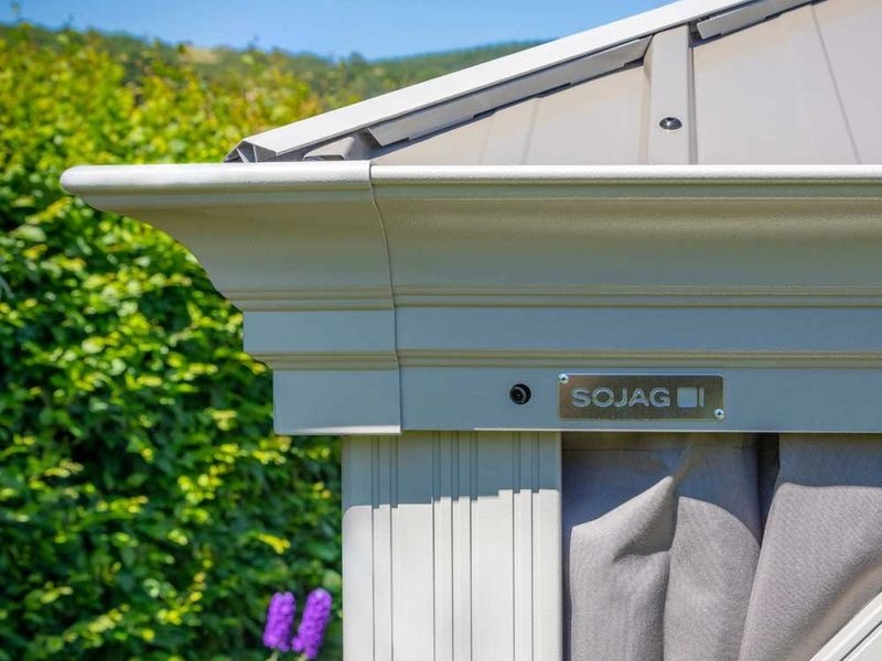 A függönyszett a teljes kerti pavilonhoz lett tervezve. Minden oldalt lefed, a függönyök pedig külön sínre vannak rögzítve, mint a rovarhálók, a dupla sínrendszernek köszönhetően. Ez megkönnyíti a kezelést.
