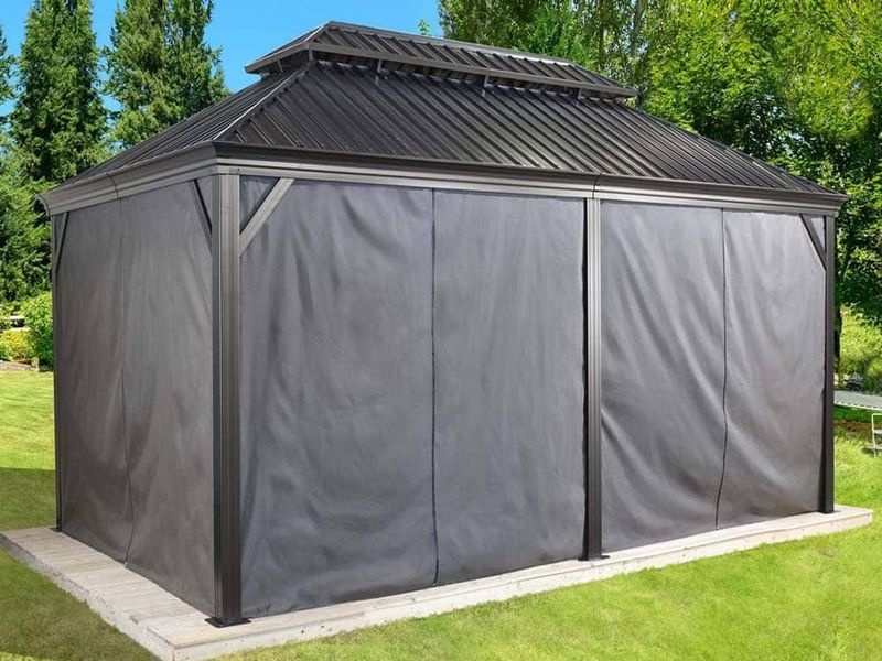 Messina 1220 kerti pavilonhoz való függönykészlet, amely nyáron árnyékot és magánszférát biztosít. Szín: sötétszürke.