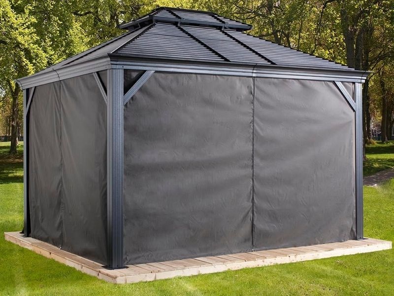 Mykonos 1216 és Messina 1216 kerti pavilonhoz való függönykészlet, amely nyáron árnyékot és magánszférát biztosít. Szín: sötétszürke.