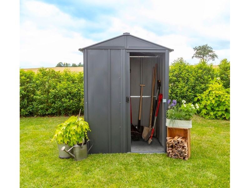 Időtálló és tágas fém kerti ház stabil szerkezettel, amely ellenáll a korróziónak és a karcolásoknak. Kiválóan alkalmas kertészeti, sport-, medence-, grillező-, kemping-, motoros és egyéb felszerelések tárolására.