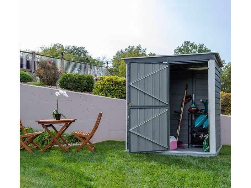 Időtálló és tágas fém kerti ház stabil szerkezettel, amely ellenáll a korróziónak és a karcolásoknak. Kiválóan alkalmas kertészeti, sport-, medence-, grill-, kemping-, motoros és egyéb felszerelések tárolására.