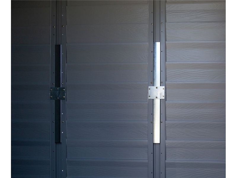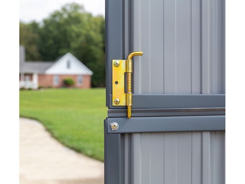 A kerti fémház elektrolitikusan horganyzott fémlemezből készült. A stílusos kerti szerszámtárolót továbbá kétdarabos ajtók egészítik ki, amelyeket középen szét lehet választani az optimális légáramlás érdekében. A lakat számára kialakított zárszerkezet lehetővé teszi a belső felszerelések biztonságos lezárását (a lakat nem része a csomagnak).