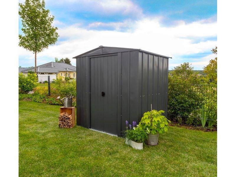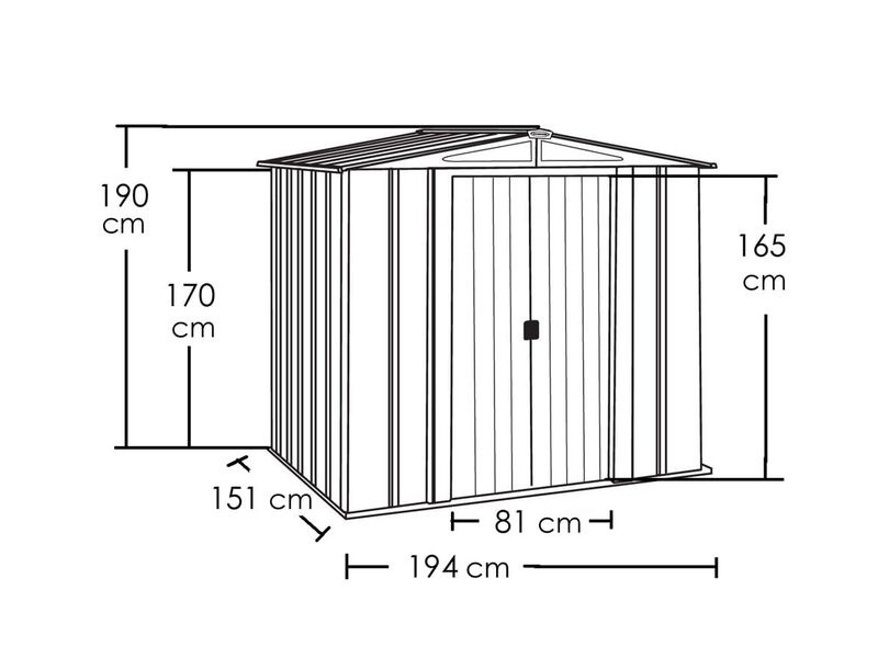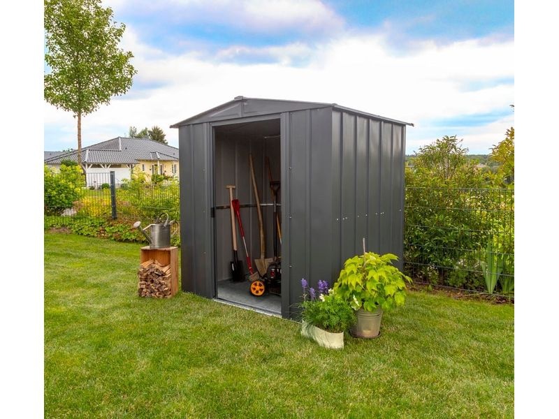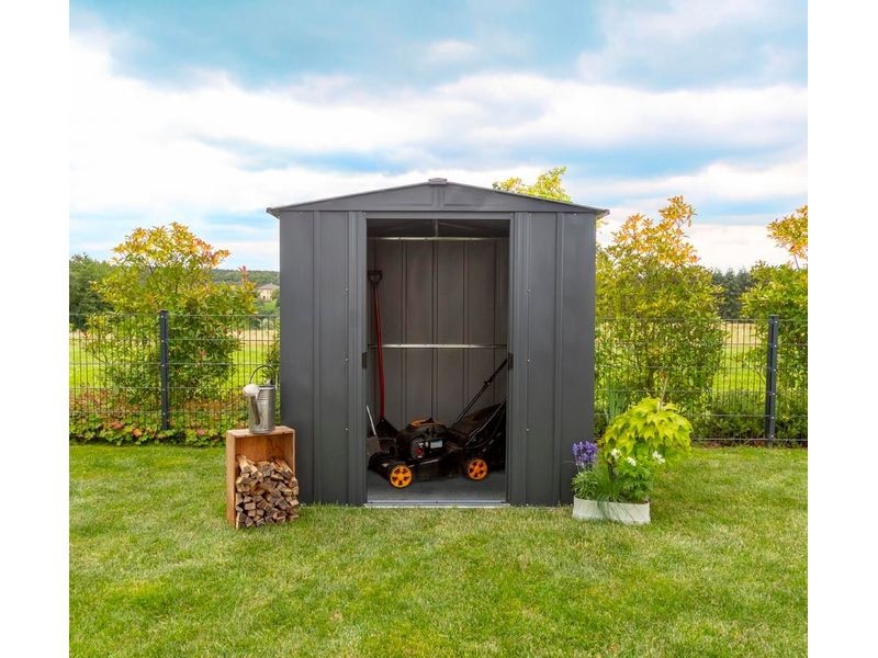 Időtálló és tágas fém kerti ház stabil szerkezettel, amely ellenáll a korróziónak és a karcolásoknak. Kiválóan alkalmas kertészeti, sport-, medence-, grillező-, kemping-, motoros és egyéb felszerelések tárolására.