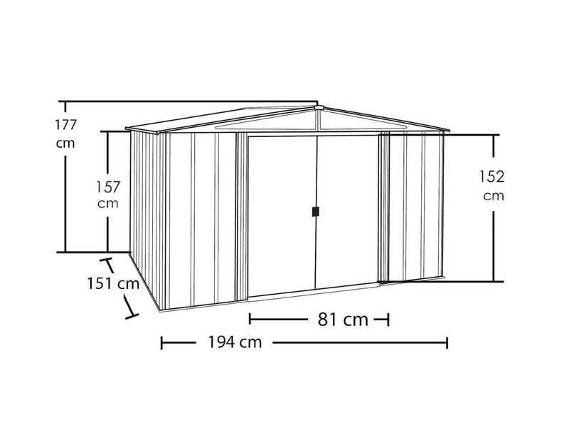 Időtálló és tágas fém kerti ház stabil szerkezettel, amely ellenáll a korróziónak és a karcolásoknak. Kiválóan alkalmas kertészeti, sport-, medence-, grillező-, kemping-, motoros és egyéb felszerelések tárolására.