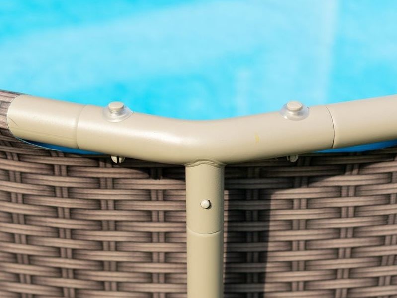 A földre állított medence váza fémből készült acélcsövekből áll. A medence külső fala műrattan hatású felületet imitál, amely kiválóan illeszkedik szinte bármilyen kertbe.