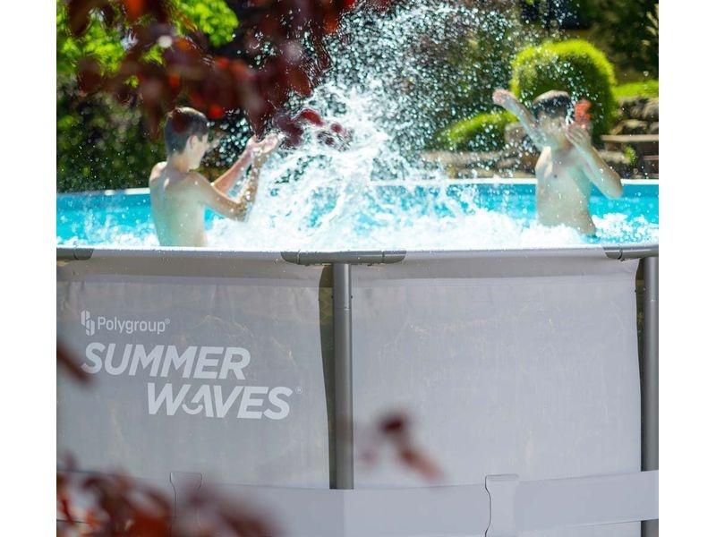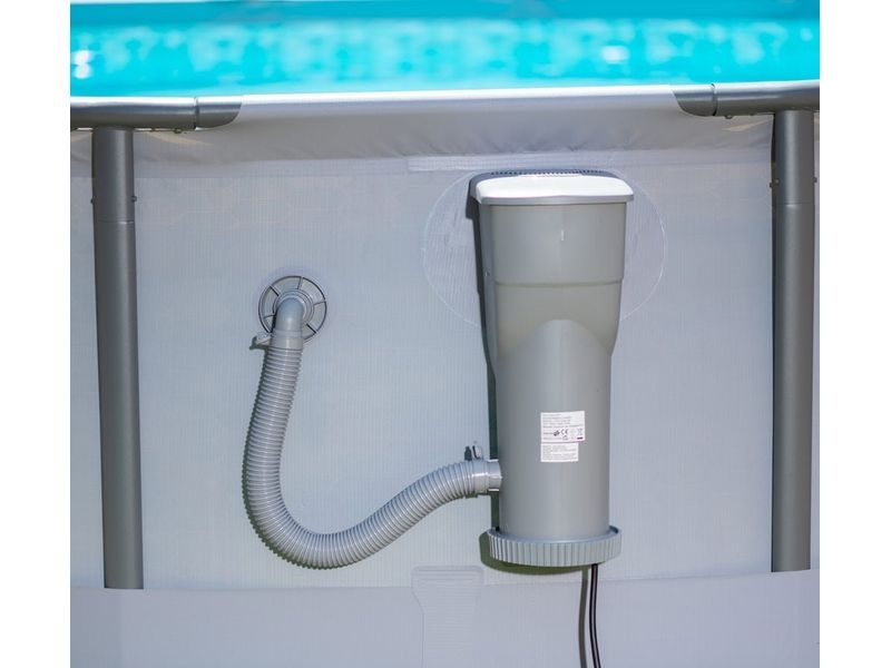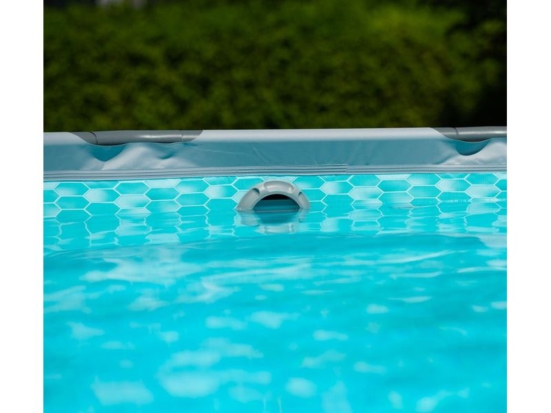 A földre állított medence váza fémből készült acélcsövekből áll. A medence külső fala elegáns szürke árnyalatban pompázik, így szinte bármelyik kertbe tökéletesen illeszkedik.