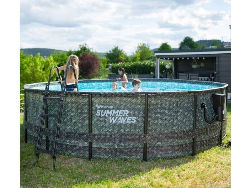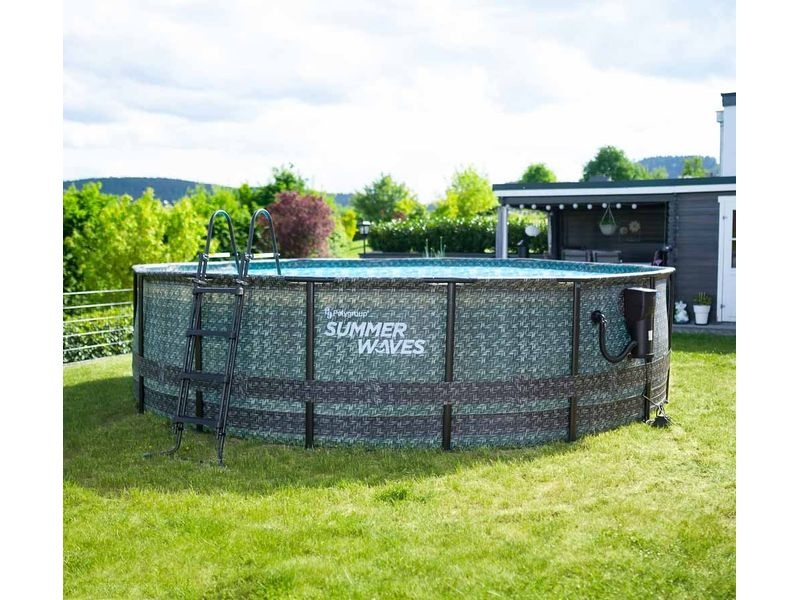 A medence 90%-os feltöltöttségnél 19 858 liter vizet tartalmaz. Legfeljebb 7 fő számára nyújt kényelmes fürdőzést. Ez a medencemodell ötvözi a földre állított és a földbe süllyesztett medencék előnyeit: egyszerűen összeállítható és áthelyezhető, ugyanakkor tartós és stabil.