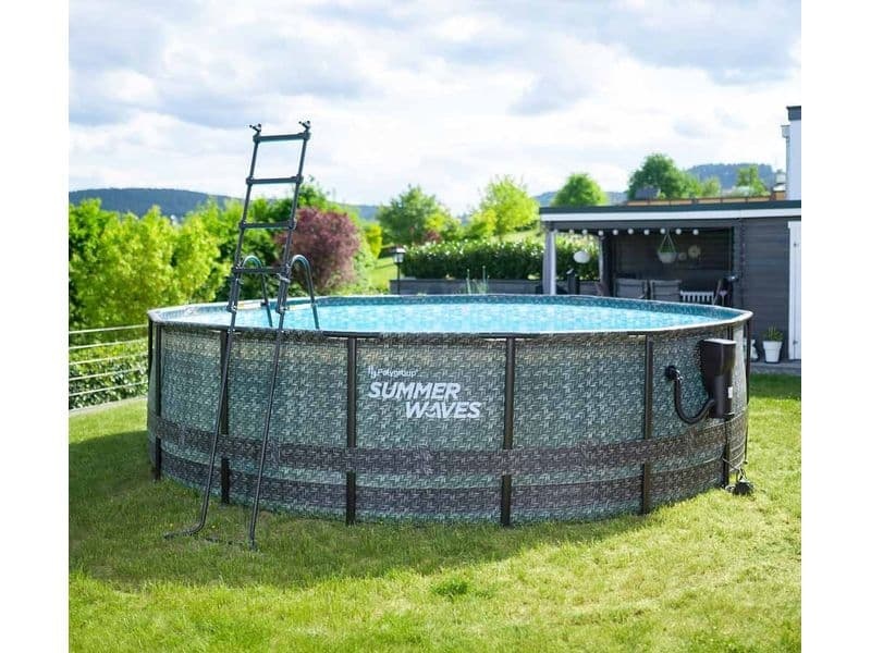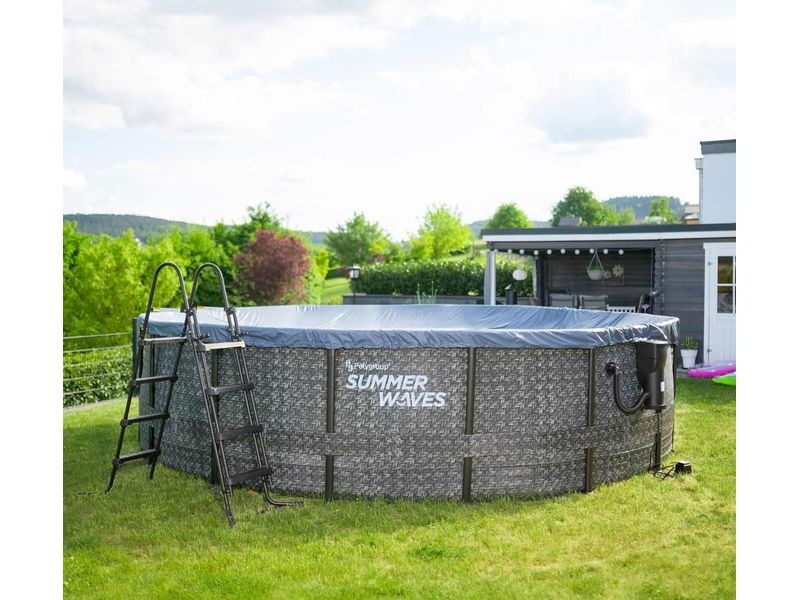 A földre állított medence váza fémből készült acélcsövekből áll. A medence külső fala elegáns szürke árnyalatban pompázik, így szinte bármelyik kertbe tökéletesen illeszkedik.
