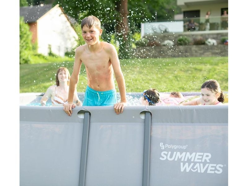A földre állított medence váza fémből készült acélcsövekből áll. A medence külső fala elegáns szürke árnyalatban pompázik, így szinte bármelyik kertbe tökéletesen illeszkedik.