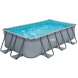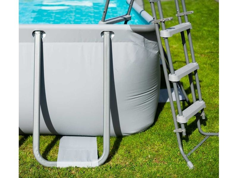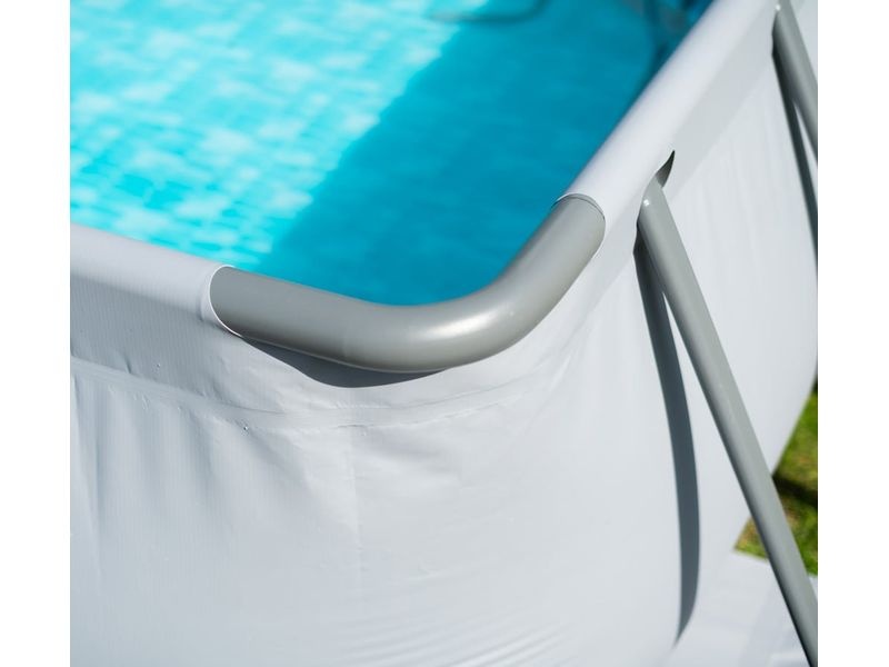 A földre állított medence váza fémből készült acélcsövekből áll. A medence külső fala elegáns szürke árnyalatban pompázik, így szinte bármelyik kertbe tökéletesen illeszkedik.