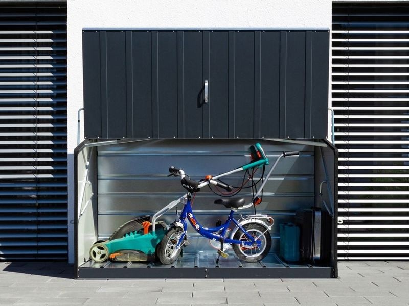 A Storeguard fém tárolódoboz praktikus és biztonságos megoldást kínál kerékpárok, kerti szerszámok és egyéb felszerelések tárolására. Hosszabb kialakítása több tárolóhelyet biztosít, mint a Stowaway modell, így ideális kertbe, ház mellé vagy garázsba.