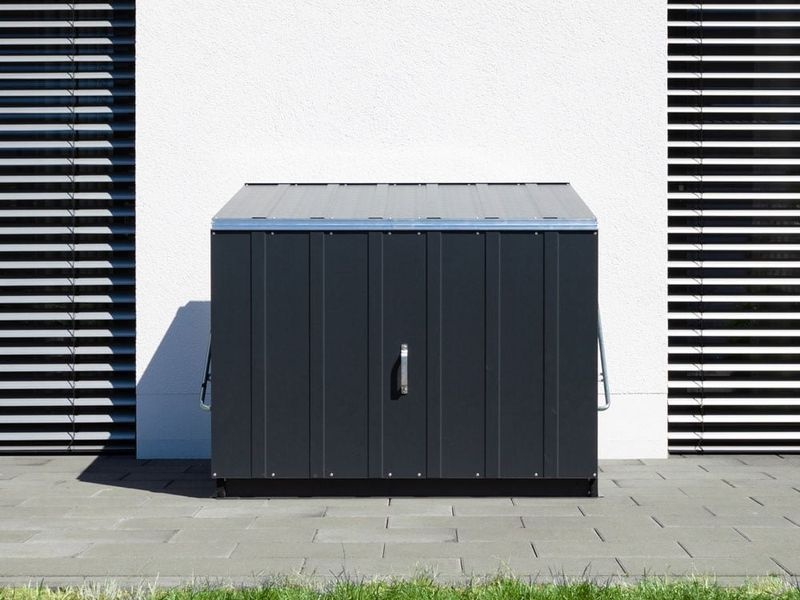 A Stowaway fém tároló box praktikus megoldást kínál a kerti gépek, szerszámok és kerékpárok biztonságos tárolására. Kompakt méreteinek köszönhetően ideális a kertbe, a ház mellé vagy kisebb terekbe is.
