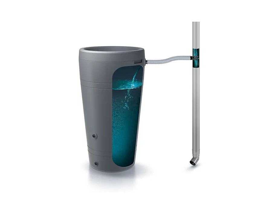 A készlet az esővíz összegyűjtésére és a tartályba történő vezetésére való. A készlet 6 elemet tartalmaz: 3 csatlakozót, széles tömlőt nagyobb vízhozam elvezetésére és egy csutorát.
