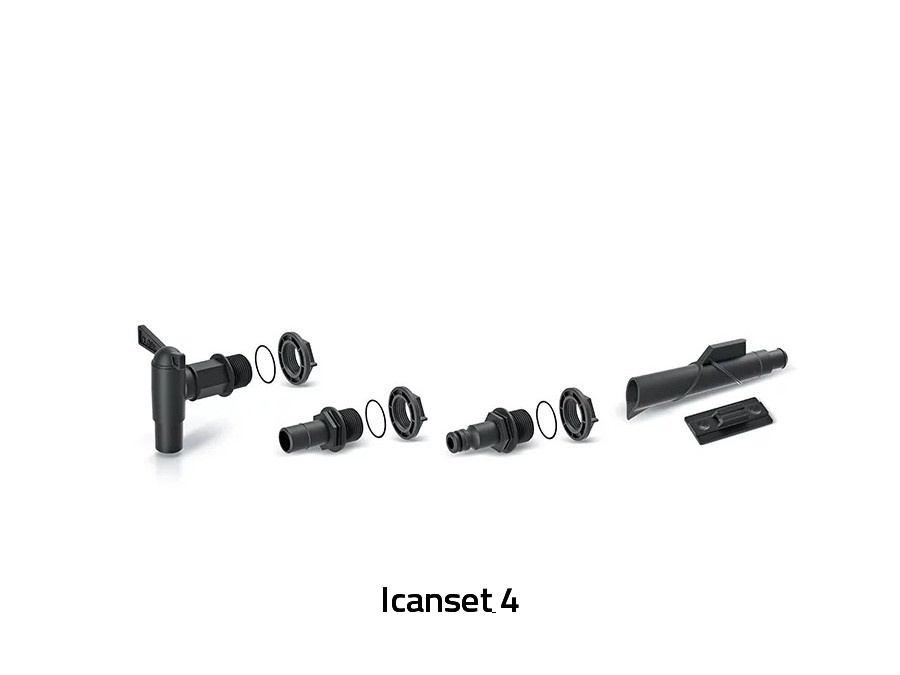 A készlet lehetővé teszi a hordóban összegyűjtött esővíz elvezetését. A készlet 13 részből áll: fúrófejek, csatlakozók, csap, gyorscsatlakozó, átlátszó kerti tömlő, tömlődugasz, tömlődugasz tartója, 3 csatlakozó, összekötő tömlő, külső szűrő, csutora. A készletet egy külső szűrő teszi teljessé, amely kiszűri a nagyobb méretű szennyeződéseket az esővízből. Univerzális készlet.