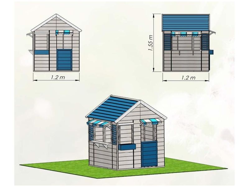 A Dolphin játékház mérete 120×120×155 cm, amely sok örömet és teret biztosít a gyerekeknek a kreatív játékokhoz, és egyben gyönyörű kiegészítője is lehet a kertnek. Egyedi játékélményt és lehetőséget kínál a saját történetek megalkotására.