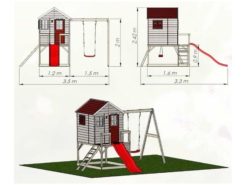 A Elephant sétapálcás házikó méretei 330×350×242 cm, praktikus és szórakoztató kiegészítője kertjének. A házikó része egy csúszda hintával és homokozóval, ami nagyszerű játéklehetőségeket biztosít a gyerekeknek. Ideális hely a kalandokhoz és a kreatív játékhoz, amely örömet és szórakozást nyújt a gyerekeknek.