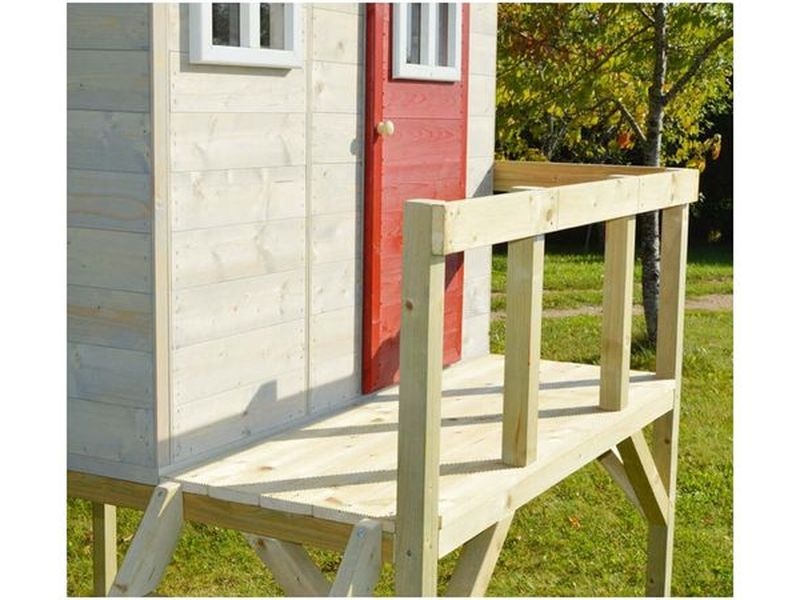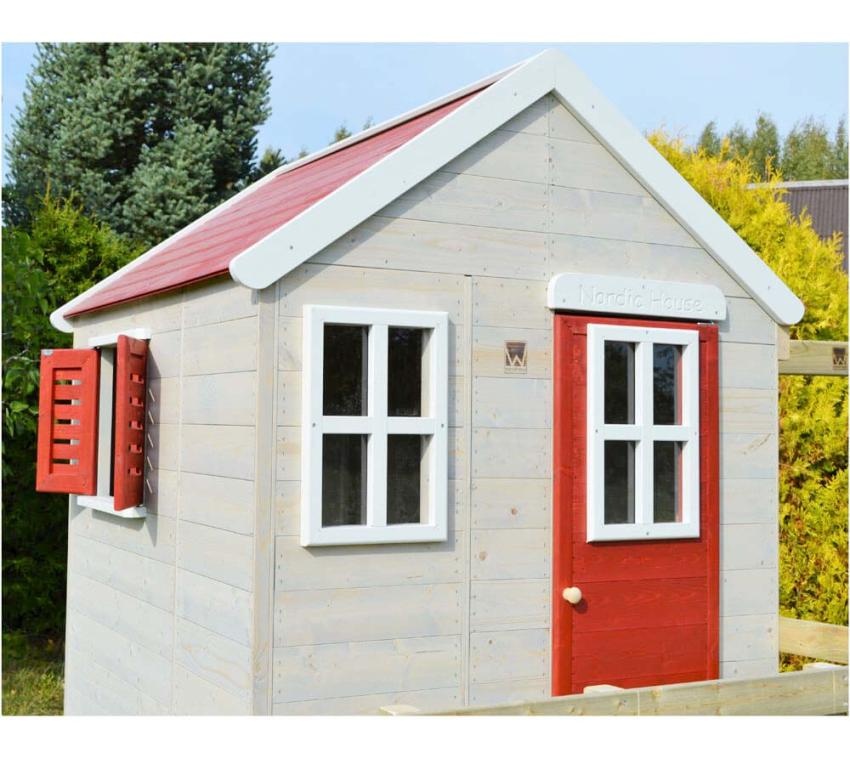 A házikó tartós északi lucfenyőből készült, amely