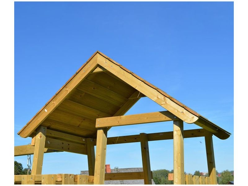 A játszótornyot tartós északi fenyőből készítették,