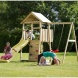 A 280×270×270 cm méretű játszótorny praktikus és szórakoztató kiegészítője kertjének. A torony része egy csúszda hintával, mászófallal és homokozóval, ami remek játéklehetőségeket biztosít a gyerekeknek. Ideális hely a kalandokhoz és kreatív játékokhoz, amelyek örömet és szórakozást nyújtanak gyermekeinek.