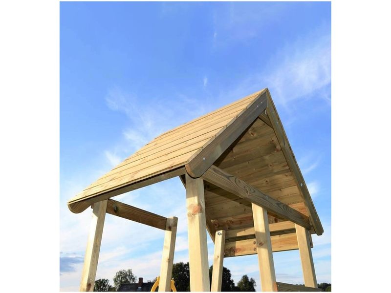 A 280×110×270 cm méretű játszótorony praktikus és szórakoztató kiegészítője kertjének. A toronyhoz csúszda és mászófal tartozik, amelyek remek játéklehetőségeket kínálnak a gyerekeknek. Ideális hely a kalandokhoz és kreatív játékokhoz, amelyek örömet és szórakozást nyújtanak gyermekeinek.