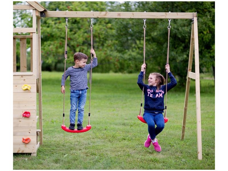 A játszótornyot tartós északi fenyőből készítették, amely hosszú élettartamot és biztonságot garantál gyermeke számára. Az összes felhasznált anyag szigorú biztonsági előírásoknak felel meg, amit az FSC-Mix 70% és az EN71 tanúsítvány igazol. A torony teherbírása 100 kg. A hinta teherbírása 50 kg.