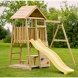 A játszótorony csúszdával van felszerelve, amelyhez létra és